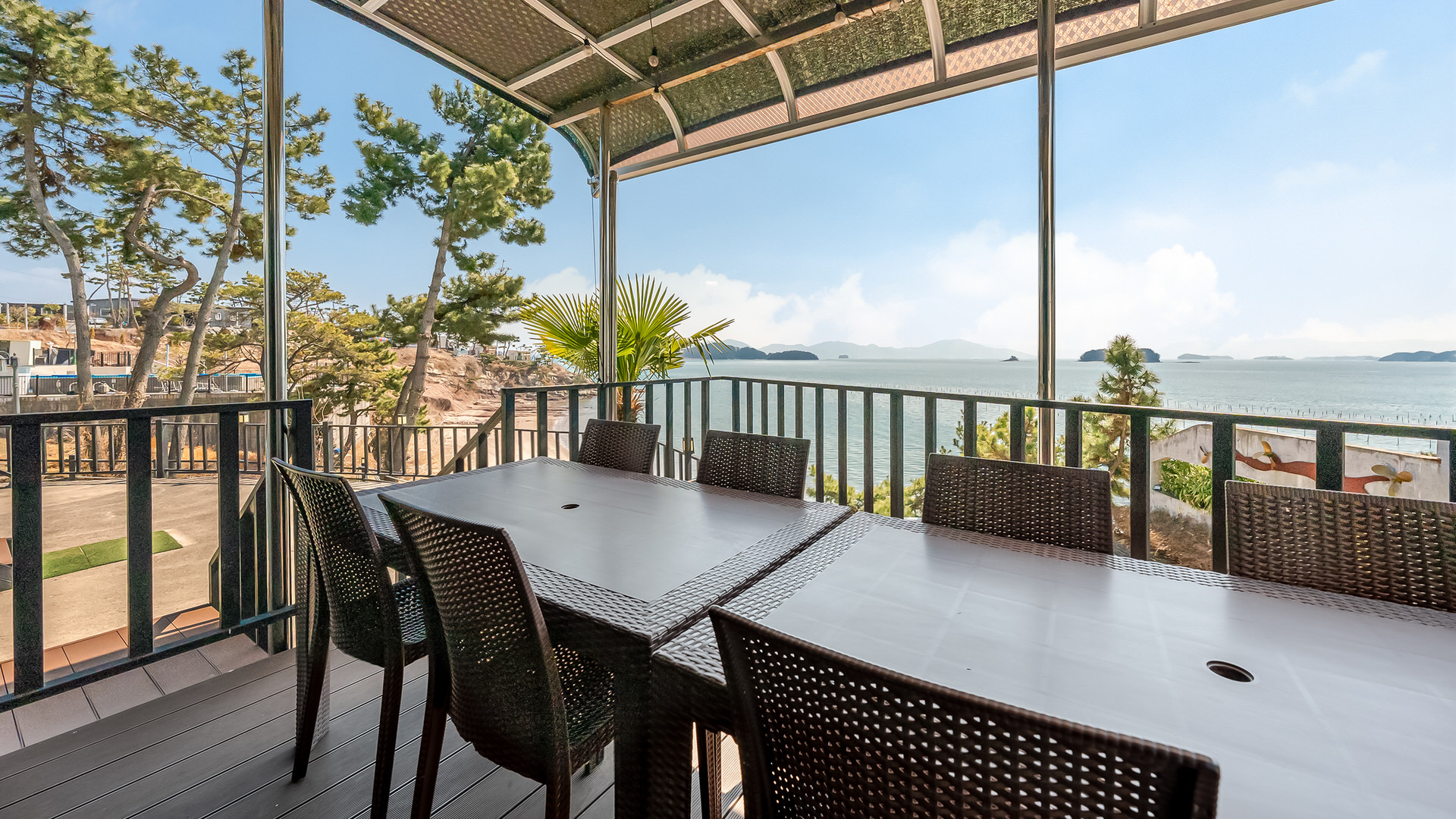 바다의 경관을 바라보며 여유로운 시간